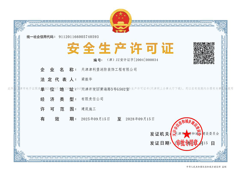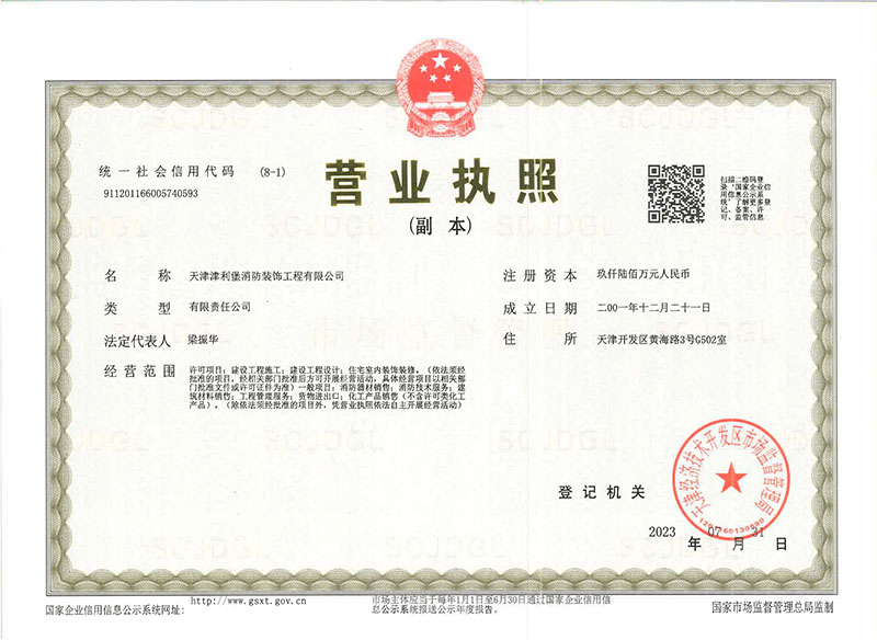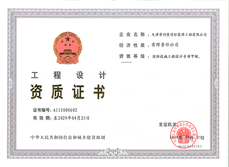 天津津利堡消防裝飾工程有限公司是注冊(cè)于天津經(jīng)濟(jì)技術(shù)開(kāi)發(fā)區(qū)、具有獨(dú)立企業(yè)法人資格的工程公司,是專(zhuān)門(mén)從事消防系統(tǒng)的設(shè)計(jì)、安裝、供貨、維修、保養(yǎng)及咨詢(xún)服務(wù)的現(xiàn)代化企業(yè)。具有建設(shè)部頒發(fā)的消防行業(yè)最高等級(jí)資質(zhì):消防設(shè)施工程專(zhuān)業(yè)承包壹級(jí)資質(zhì)、消防設(shè)施工程設(shè)計(jì)專(zhuān)項(xiàng)甲級(jí)資質(zhì),同時(shí)具有建筑裝修裝飾工程專(zhuān)業(yè)承包壹級(jí)資質(zhì)、建筑機(jī)電設(shè)備安裝工程專(zhuān)業(yè)承包壹級(jí)資質(zhì)、電子與智能化工程專(zhuān)業(yè)承包貳級(jí)資質(zhì)、機(jī)電工程施工總承包貳級(jí)資質(zhì)、施工勞務(wù)(備案事項(xiàng))不分等級(jí)資質(zhì),符合應(yīng)急管理部發(fā)布的《消防技術(shù)服務(wù)機(jī)構(gòu)從業(yè)條件》,消防設(shè)施維護(hù)保養(yǎng)檢測(cè)及消防安全評(píng)估的相關(guān)信息已錄入應(yīng)急管理部的社會(huì)消防技術(shù)服務(wù)信息系統(tǒng),并取得電氣裝置消防安全檢測(cè)資質(zhì)。