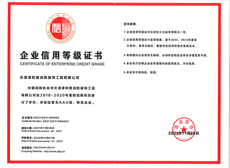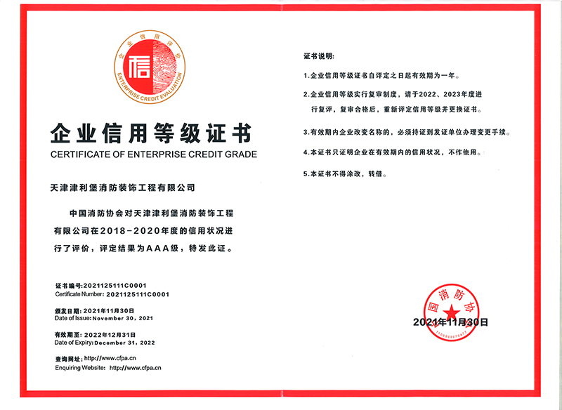 中國(guó)消防協(xié)會(huì)AAA證書(安裝施工型)